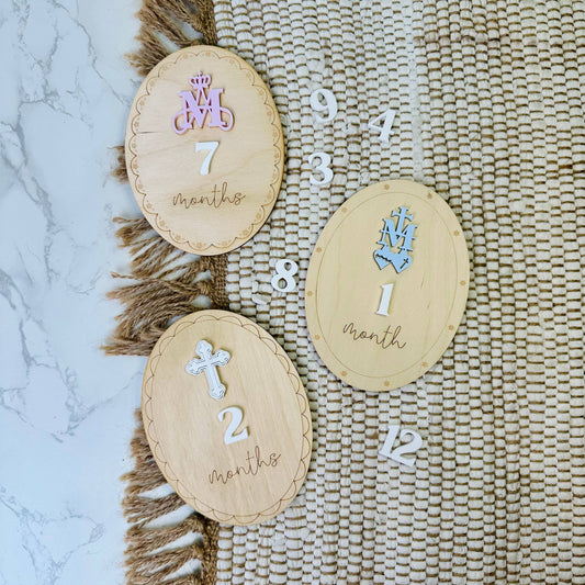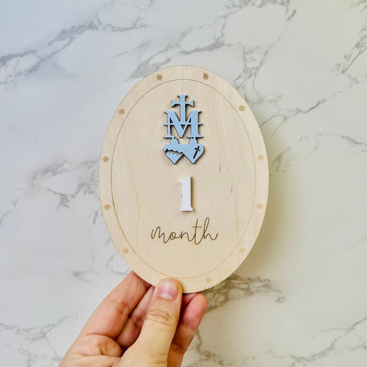 Sketch + Sentiment - Auspice Maria Catholic Baby Monthly Milestone Card: White