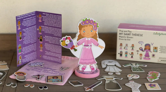 Saintly Heart LLC - My Saint Thérèse, A magnetic wooden dress-up doll set