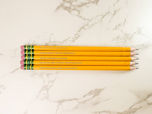 Sketch + Sentiment - St. John Paul II Engraved Catholic Pencils: Classic Yellow