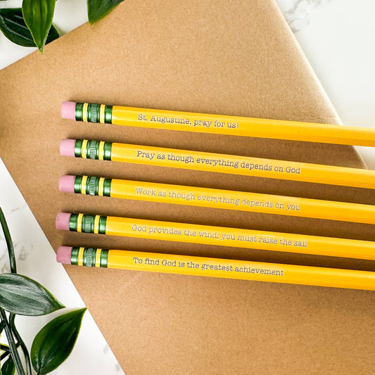 Sketch + Sentiment - St. Augustine of Hippo Catholic Engraved Pencils: Classic Yellow
