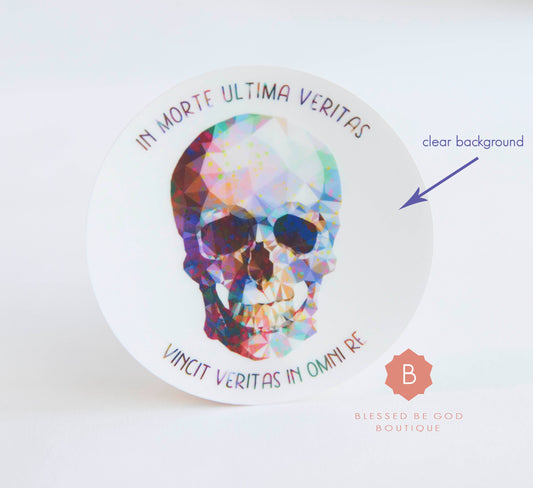 Blessed Be God Boutique - In Morte Ultima Veritas Sticker, Catholic Vinyl Sticker